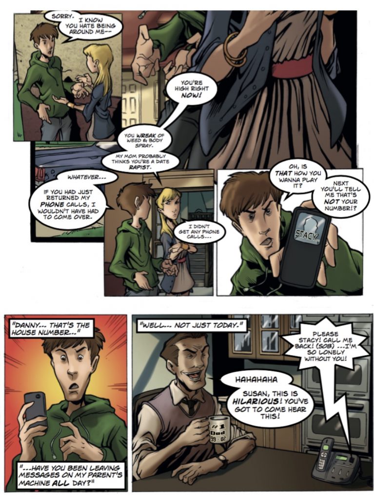 In most weed centric comedies that you see in the creative industry, weed is treated like a be-all cure-all for everything. However, that’s not the case in this book. While it doesn’t demonize the drug and does show that there are people who handle its use with a sense of responsibility, it also makes it a point to have the overuse of weed be a character flaw in the story’s protagonist, Danny. Throughout these first two issues, you really get a good look at how this kid is kind of just throwing his life away because weed is all he does. He dropped out of school and it’s kind of implied that this is because smoking was more important than classwork. His girlfriend Stacy dumped him because all he wanted to do was sit around the house and smoke pot. Weed became the very crux of his personality, but rather than this be glorified like it is in every other Seth Rogan film, it serves as the character’s fatal flaw, which ironically leads to his ascent to a superhero when he gets ahold of the experimental marijuana his dealer scored.