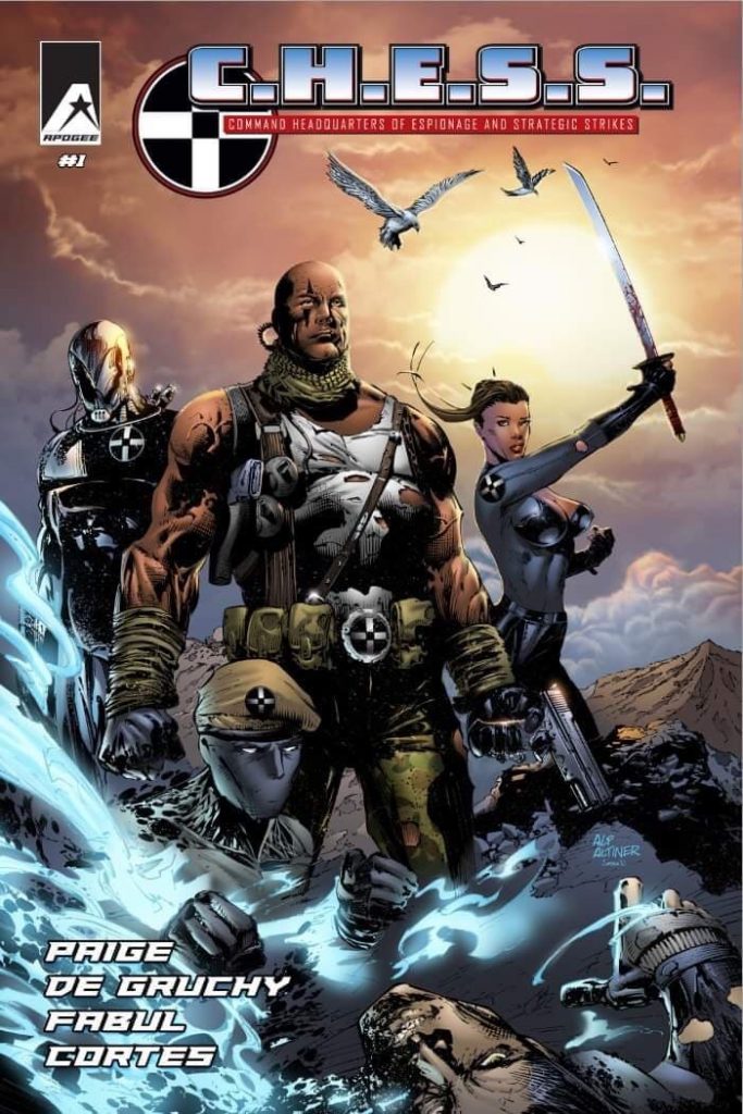If I were to describe 90s era comicbooks it would be high octaine action with lots of style and flair. What Alfred Paige has delivered in his book CHESS is a love letter to that 90s style. CHESS is about a covert, privatized team of heroes that serves as an intel gathering and response force. The story follows this covert team as they investigate an up and coming Arms Dealer who has been selling top of the line equipment with a built in failsafe switch. While there is no red flags about that on paper as they do not hide this fact, there is rumor that they have been using this failsafe to put their foot down on their customers leading to hundreds of deaths. While CHESS may be the name of the team, that is honestly the feel that this book has, a story of opponents maneuvering pieces around a chess board, and it’s because of this that I decided to review both the first and second issue at the same time to capture that feel.