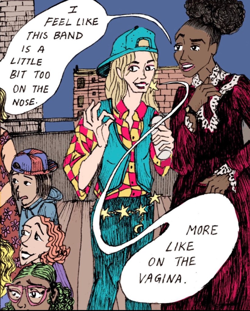 The story is the most important thing when discussing any sort of narrative based medium. This particular podcast examines the lives of two lesbian roommates, Deja and Chloe who are very close friends and band mates in a group called G.O.A.L (Greatest Of All Lesbians). Each episode follows them as they navigate their sexuality and dating lives, while also trying to be successful with their music and the women that they run into and occasionally have relationships with. It’s structured like a comedy sitcom and plays out through these characters and the narrators that utilize musical interludes to move the story along and give context to each scene.